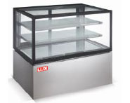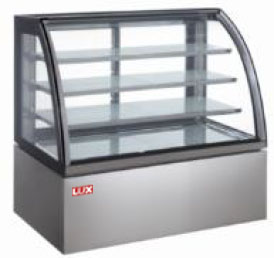Vitrina refrigerada en color acero, con iluminación LED, flujo de aire frío forzado, controlador digital de temperatura, compresor hermético y sistema de defrost automático, ruido menor a 55db.